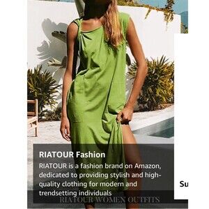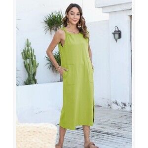 🌿🎨 NEW Riatour XS Pale Green Midi Dress – Asymmetric Straps, Cotton, Pockets
