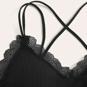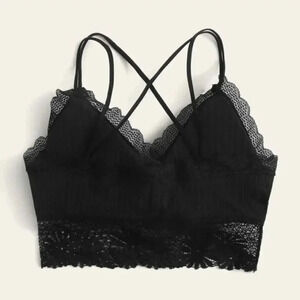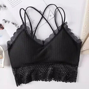 NEW! Ribbed Floral Lace Trim Strappy Bralette