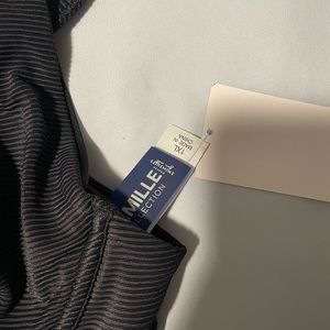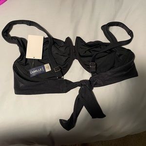 Ribbed underwire top Tie back Adjustable straps Fully lined 85% Nylon / 15% Spandex Size 1X- fits a 38-40DD but adjustable