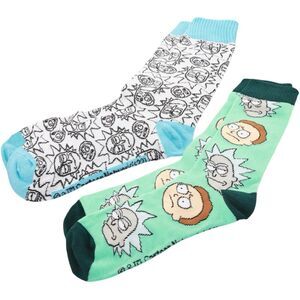 NEW IN BOX Rick and Morty novelty socks & pins from the brand CultureFly. Contains two (2) socks and two (2) pins. See photos.