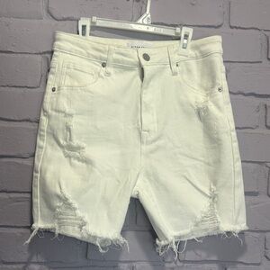 NEW Risen jeans White Distressed Denim Shorts size L