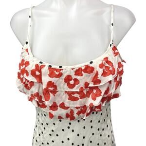 NEW Rixo for Target White Red Floral Polka Dots Ruffle Cami Slip Midi Dress XS
