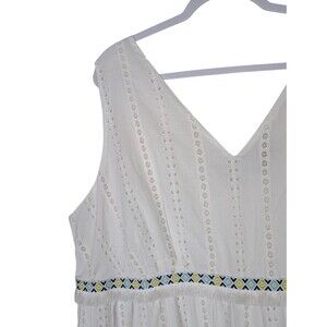 NEW Roamans 24W Dress White Cotton Embroidered Eyelet Tiered Maxi