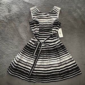 NEW Robbie Bee Women’s Sleeveless Black/ White/ Gray Striped Sundress