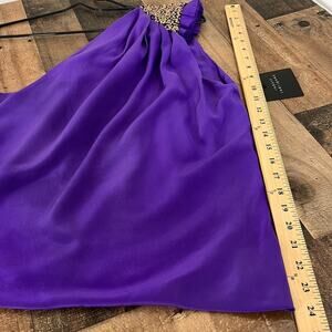 Robert Rodriguez purple silk one shoulder blouse with sequin detailing on shoulder with shoulder pad.