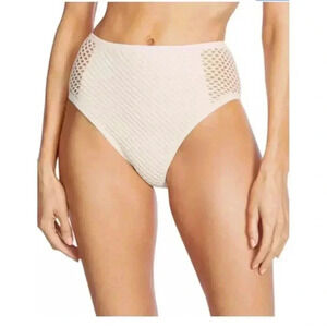 NEW Robin Piccone Pua Cream Crochet Triangle High Waisted Bikini Size Large