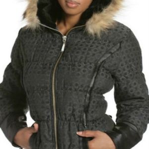 NEW Rocawear Y2K 00's Black Fur Hood FEATHER ,DOWN , LEATHER, FUR COAT L *