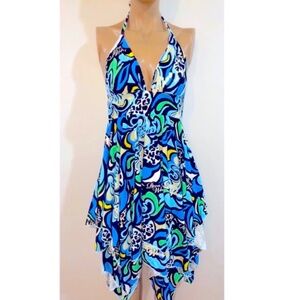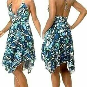 NEW Rocawear Y2K Colorful Blue Print Sexy Ruffle Dress / NEW Rocawear Y2K 90 psychedelic Hippie Funky Print Sexy Ruffle Halter Dress
