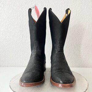 NEW Rod Patrick Mens Cowboy Boots 12.5AAA Black Suede Caiman Western French Toe