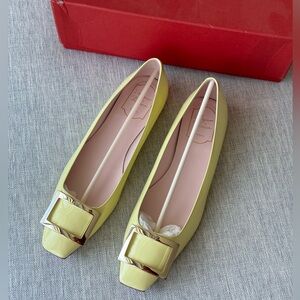 NEW Roger Vivier QUADRATA Trompette Metal Buckle Ballerinas flats, light yellow