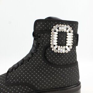 NEW Roger Vivier Viv Rangers Strass Booties – Crystal Buckle Combat Boots