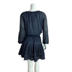 NEW Roller Rabbit Black Arista Dress Eyelet Ruffle Smock Long Sleeve Mini Boho S
