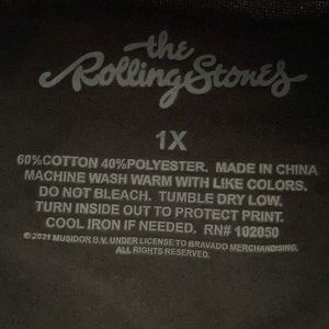 Distressed writing by design on the front and iconic tongue symbol is also distressed on the back