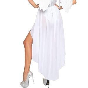 This romantic, Angel of Desire costume includes a silver sequin bodysuit with angel wing cups and an attached white mesh overskirt. (Wings not included.)