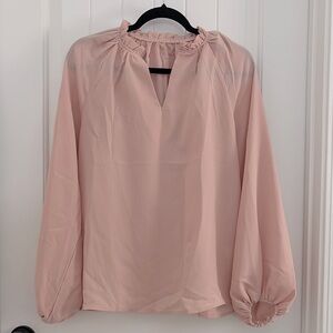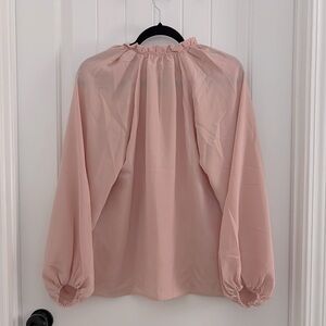 This features a v-neckline, elastic cuffs, and a relaxed fit. Its gathered detail around the neckline add a touch of elegance to any outfit. Perfect for formal and casual outings.