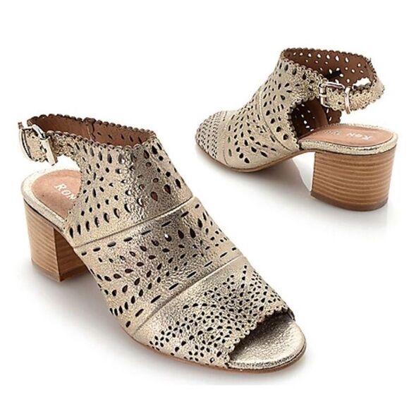 NEW Ron White "Dora" Laser Cut Nubuck Leather Adjustable Buckle Peep Toe Sandals
