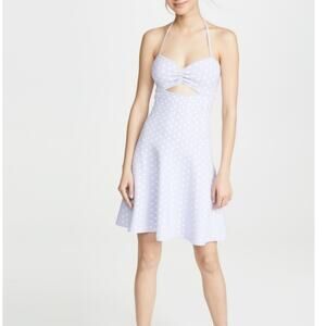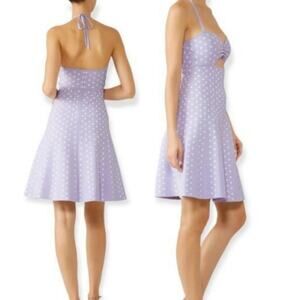 NEW Ronny Kobo Shila Knit Halter Mini Dress XS Lavender Purple Polka Dot Cutout