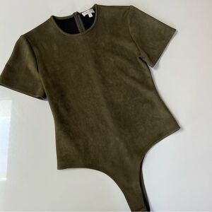 Brand new without tags, never got a chance to wear it and it’s way too small for me after I just had a baby. The thick velvety suede is so soft and lux! Retailed for $328. Really quality bodysuit. Would LOVE to trade for a new or new without tags large or extra large too, that’s how good this bodysuit is!