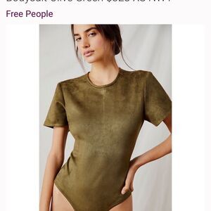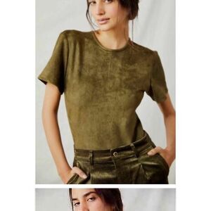 NEW Ronny Kobo x Free People Mali Velvety Suede Green Short Sleeve Bodysuit