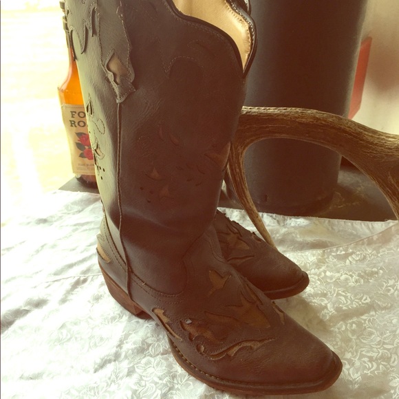 Roper two-tone boots. Brand new. MIL ordered them new for wedding, and they didn’t fit her! Our loss your gain. Size 8.5 M. Non smoking home.