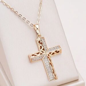 NEW Rose Gold 3D Grade AAA Zircon Cross Necklace