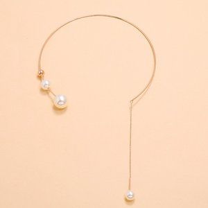 NEW Rose Gold Geometric C Shaped Open Pearl Long Link Chain Necklace