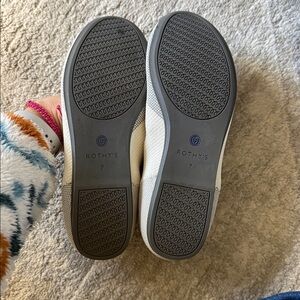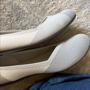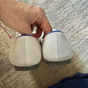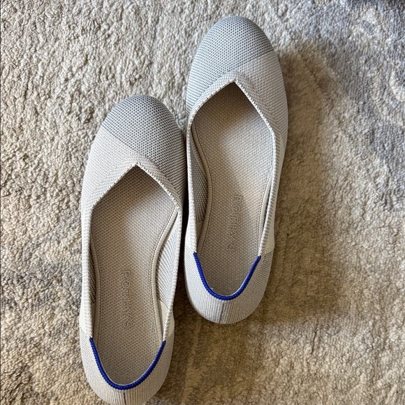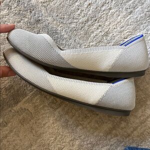 Rothy’s Daily Flat size 7. Two tone greys but also looks blue on the toe area. Didn’t like the fit for my foot, my loss is your win. Only wore once around house for fit. Never washed. Smoke free home. Photos taken in natural indirect lighting.