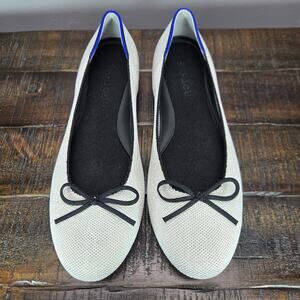 NEW Rothys The Ballet Flat Bow Womens 9 Flats Slip On Ballet Shoes Silver White