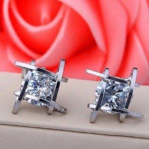 NEW Round Solitaire Caged Diamond Stud Earrings