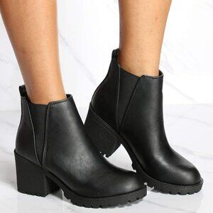 NEW🔥 Round Toe Chelsea Ankle Boots Booties Chunky Block Heel Lug Sole Platform