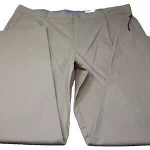 Elevate your style with these men's rowing blazer dress pants. The cream tan color and solid pattern make them versatile for any occasion. The pants feature a pleated front, button and zip closure, and four pockets for added convenience. Crafted from high-quality cotton fabric, these pants are comfortable and durable. They come in a size 40 waist and 32 inseam, with a straight leg style. Perfect for any fashion-conscious man, these dress pants are a great addition to your wardrobe.