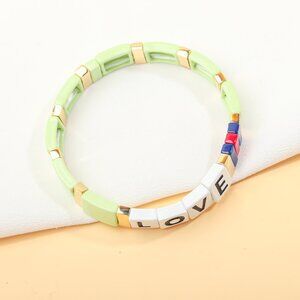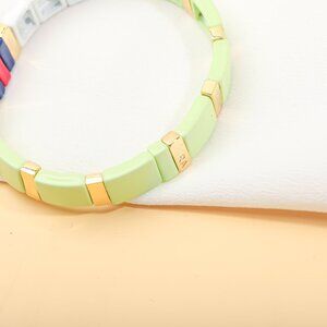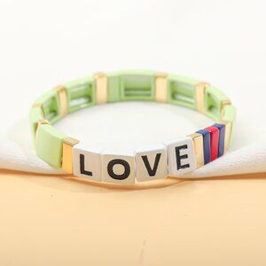 NEW Roxanne Assoulin Just Say Love Gold Light Green Enamel Stretch Bracelet