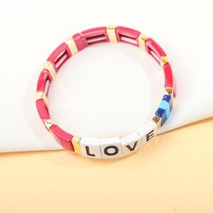 NEW Roxanne Assoulin Just Say Love Gold Red Enamel Stretch Bracelet