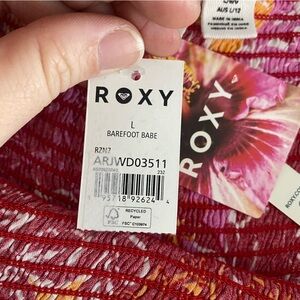 NEW Roxy Barefoot Bade Smocked Romper Large Red Pink Orange Hibiscus Floral