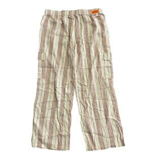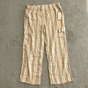 NEW Roxy Linen Cargo Pants Women's XXL With 30" Inseam Striped