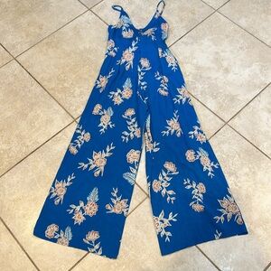 NEW Roxy Wheel and Palm Wide Leg Jumpsuit XS Mykonos Blue Floral