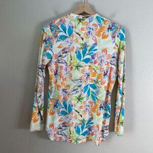 NEW Roxy Womens Medium Floral Long Sleeve Sea Skippin PT Lycra Top Rash Gaurd