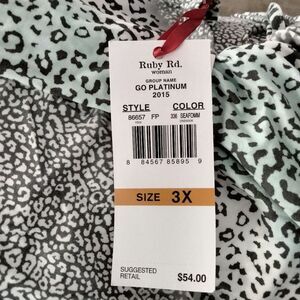 NEW Ruby Rd Leopard Print Women's Top Jeweled Neckline 3/4 Sleeve