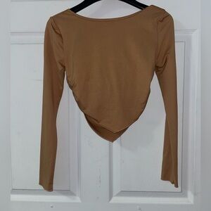 This tan Crop Top from SHEIN features a stylish ruched design that adds texture and elegance to your look. The form-fitting silhouette and soft, stretchy fabric ensure a comfortable fit, while the bodysuit style offers a sleek, seamless appearance. Perfect for adding a touch of sophistication to any outfit.