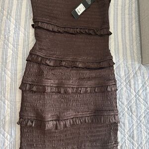 House of cb dupe! Fashion nova brand new with tags brown ruffle dress. Has lots of stretch