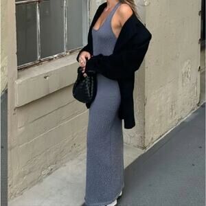 💙 NWT Rumored Cloud Nine Racerback Textured Knit Maxi Dress | Denim Blue | Size Medium