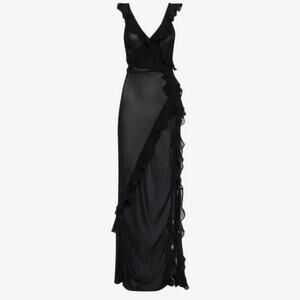 🖤 NWT Rumored Just Like Heaven Sheer Black Ruffle Wrap Maxi Dress | Size Medium 🖤