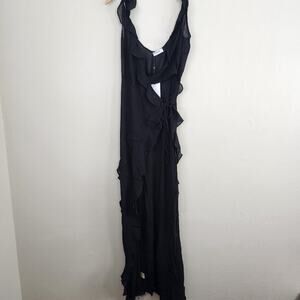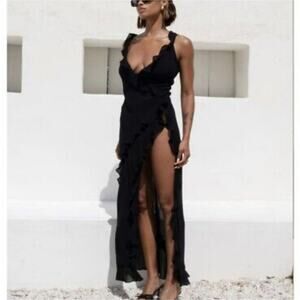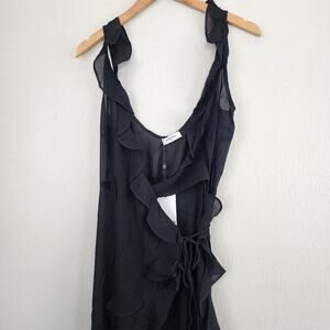 NEW Rumored NWT Sheer Ruffle Wrap Maxi Coverup Black M