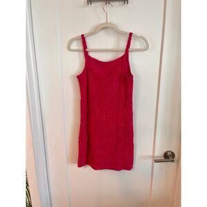 NEW Rumored Pink Sleeveless Ribbed Knit Sequin Palm Beach Mini Dress Size XS