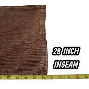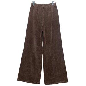 New with Tag. Size SMALL. 26.5 Inch Waist, 28.5 Inch Inseam, 13.5 Inch Rise. Washed Brown. High waist and wide legged with a front pleated detail. Zip and button front closure. Corduroy material. 100% Cotton.