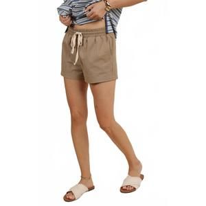 Introducing the Cocoa Tracks Drawstring Short by SAGE THE LABEL, crafted for summer adventures. With an elastic waist and adjustable drawstring, these shorts offer comfort and style. Made from 100% cotton, they promise durability and a canvas fabric feel, complete with convenient pockets. Care is simple with machine wash cold and line dry instructions.