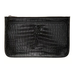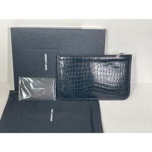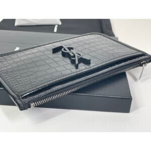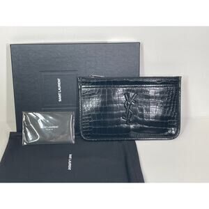NEW! SAINT LAURENT CROC BLACK LEATHER ZIP YSL POUCH BAG WALLET CARD HOLDER BOX!