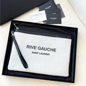 NEW!! SAINT LAURENT Rive Gauche Linen Canvas Wristlet Pouch - Optic White