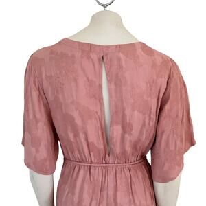 This flowing romantic dress has beautifully embossed rose print with a pretty puckering detail that adds a subtle charm. Very Feminine, with an Easy Boho, Cottagecore, Softgirl, Beach Chic, LA vibe.