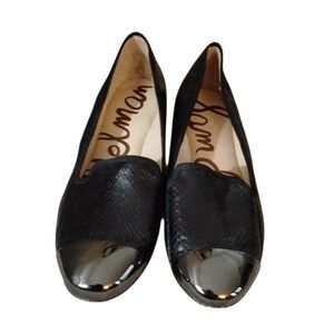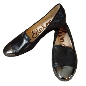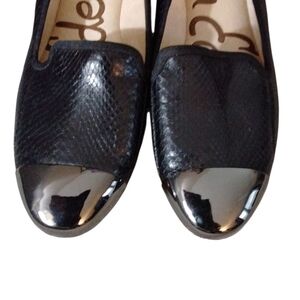 NEW SAM EDELMAN Aster Black Metallic Cap Toe Flats Snake Embossed Loafer Sz 5.5